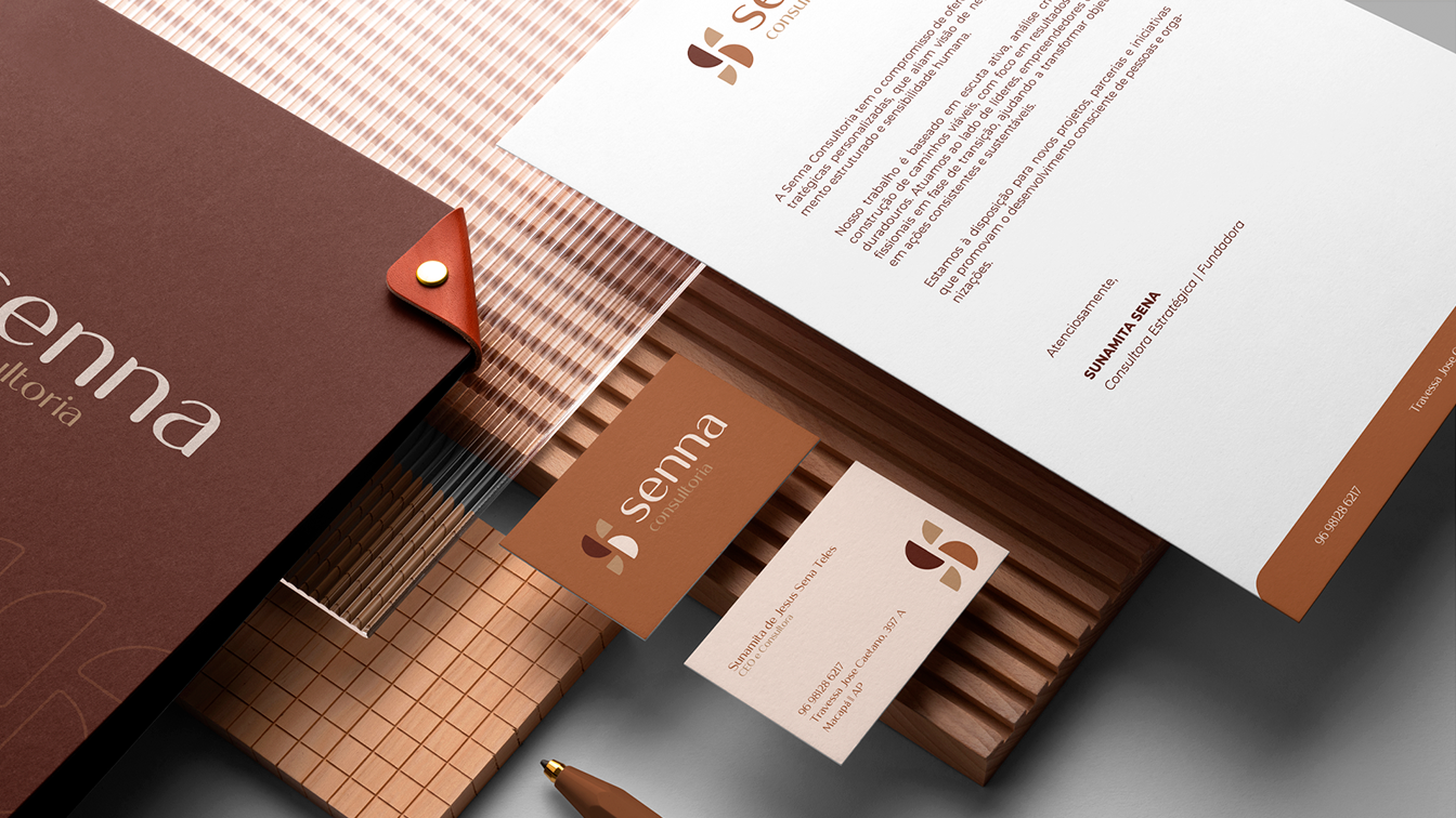 O resultado é uma identidade coesa, moderna e acolhedora, que posiciona a Senna Consultoria como uma parceira estratégica para empreendedores que buscam clareza, orientação e segurança na construção e no desenvolvimento de seus negócios.